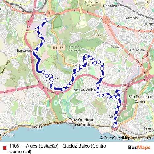 Bus 1105 - Algés (Estação) - Queluz Baixo (Centro Comercial): Full Schedule in Lisbon