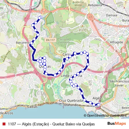 Bus 1107 - Algés (Estação) - Queluz Baixo via Queijas: Full Schedule in Queijas