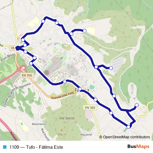 The first stop of the 1109 bus route is Terminal Rodoviário / Santuário and the last stop is Terminal Rodoviário / Santuário. 1109 (Tufo - Fátima Este) is operational during on weekdays.
