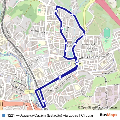 Click here to view the nearest 1221 - Agualva-Cacém (Estação) via Lopas | Circular bus stop.