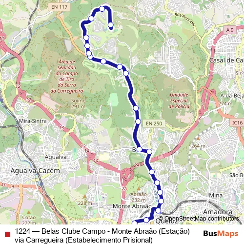 1224 Bus - Belas Clube Campo - Monte Abraão (Estação) via Carregueira (Estabelecimento Prisional)