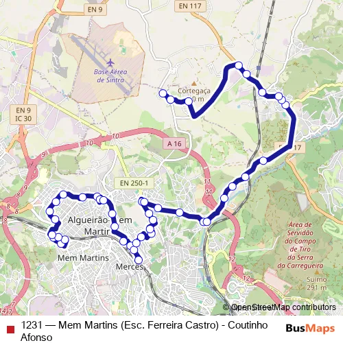 Bus 1231 - Mem Martins (Esc. Ferreira Castro) - Coutinho Afonso in Sintra: Stops & Timetable