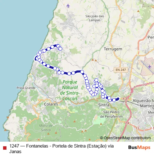 Click here to view the nearest 1247 - Fontanelas - Portela de Sintra (Estação) via Janas bus stop.