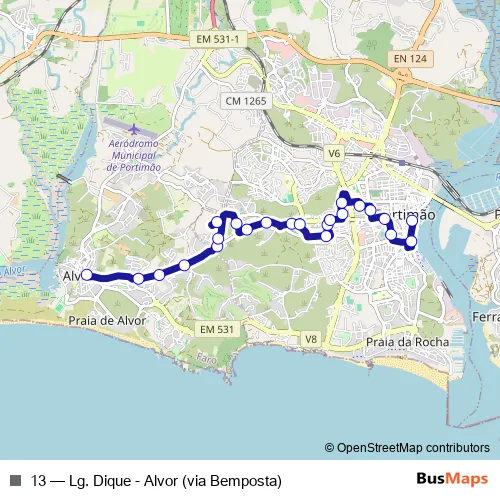 Bus 13 - Lg. Dique - Alvor (via Bemposta) Schedule in Lagoa