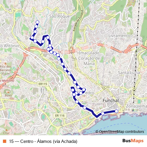 Bus 15 - Centro - Álamos (via Achada): Full Schedule in Funchal