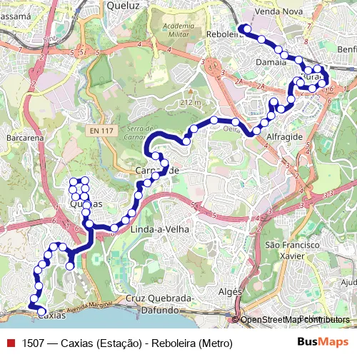 Click here to view the nearest 1507 - Caxias (Estação) - Reboleira (Metro) bus stop.