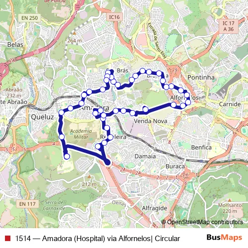 Bus 1514 - Amadora (Hospital) via Alfornelos| Circular: Full Schedule in Lisbon