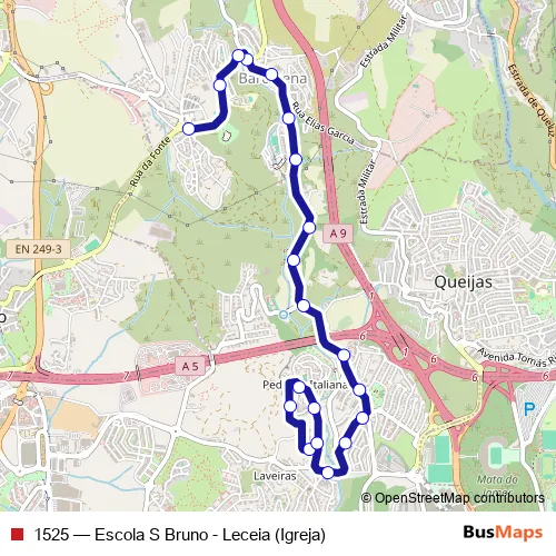 The first stop of the 1525 bus route is Escola S Bruno and the last stop is Leceia (Igreja). 1525 (Escola S Bruno - Leceia (Igreja)) is operational during on weekdays.