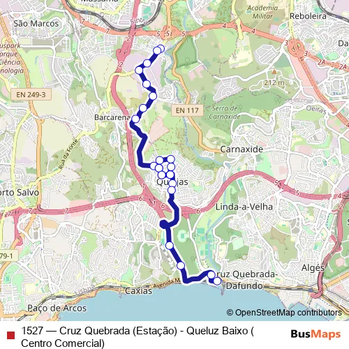Click here to view the nearest 1527 - Cruz Quebrada (Estação) - Queluz Baixo (Centro Comercial) bus stop.