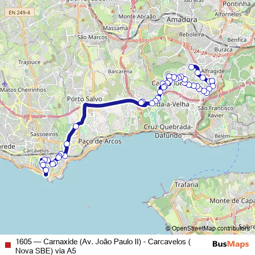 Bus 1605 - Carnaxide (Av. João Paulo II) - Carcavelos (Nova SBE) via A5 Schedule in Lisbon