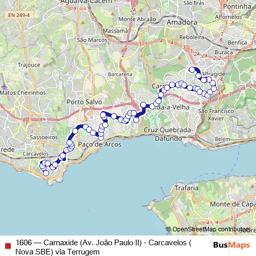 Bus 1606 - Carnaxide (Av. João Paulo II) - Carcavelos (Nova SBE) via Terrugem Schedule in Oeiras
