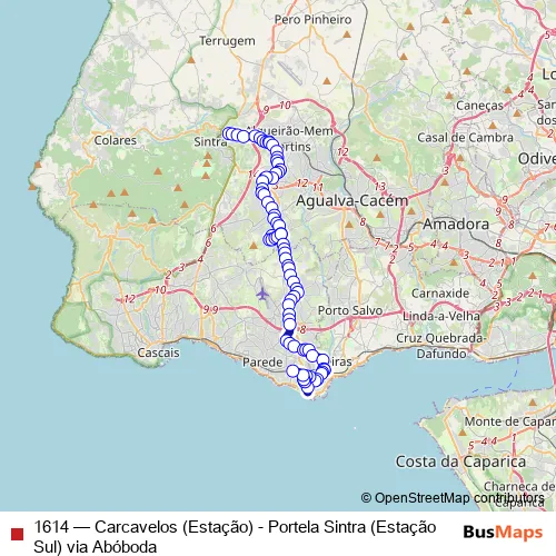 Click here to view the nearest 1614 - Carcavelos (Estação) - Portela Sintra (Estação Sul) via Abóboda bus stop.