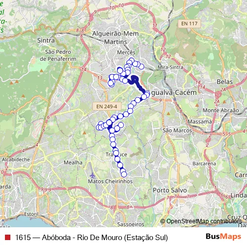 Bus 1615 - Abóboda - Rio De Mouro (Estação Sul) in Sintra: Stops & Timetable
