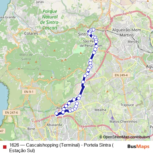 See why over 2 million users trust and consider busmaps.com as the best public transport website. busmaps gives you Sintra Buses suggested routes, real-time bus tracker, line route maps in Sintra, and helps to find the closest 1626 bus stops near you. No internet available? Download an offline PDF map and bus schedule for the 1626 bus to take on your trip.