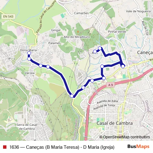 Click here to view the nearest 1636 - Caneças (B Maria Teresa) - D Maria (Igreja) bus stop.