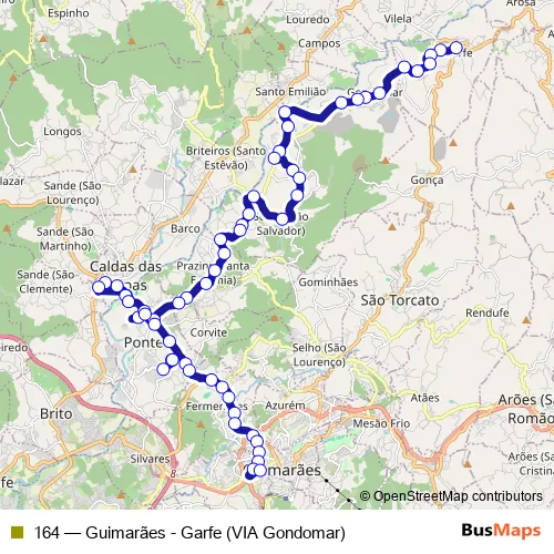 See why over 2 million users trust and consider busmaps.com as the best public transport website. busmaps gives you Guimaraes Buses suggested routes, real-time bus tracker, line route maps in Guimaraes, and helps to find the closest 164 bus stops near you. No internet available? Download an offline PDF map and bus schedule for the 164 bus to take on your trip.