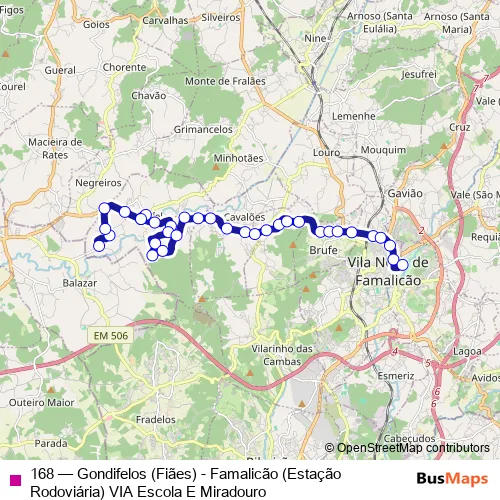 Bus 168 - Gondifelos (Fiães) - Famalicão (Estação Rodoviária) VIA Escola E Miradouro: Full Schedule in Vila Nova de Famalicao