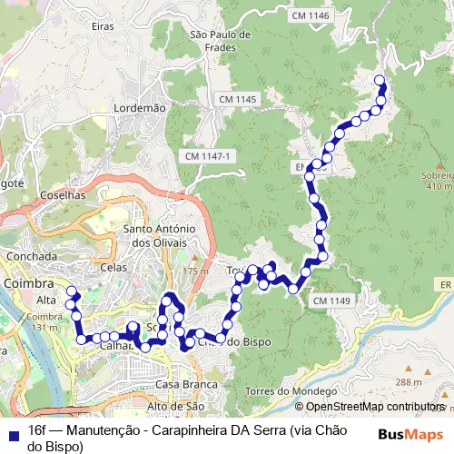 See why over 2 million users trust and consider busmaps.com as the best public transport website. busmaps gives you Coimbra Buses suggested routes, real-time bus tracker, line route maps in Coimbra, and helps to find the closest 16f bus stops near you. No internet available? Download an offline PDF map and bus schedule for the 16f bus to take on your trip.