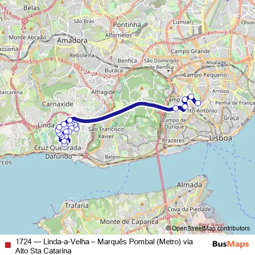 Bus 1724 - Linda-a-Velha – Marquês Pombal (Metro) via Alto Sta Catarina in Lisbon: Stops & Timetable