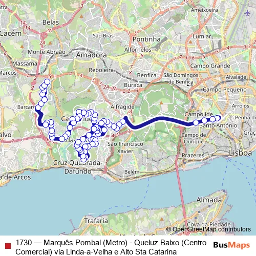 1730 (Marquês Pombal (Metro) - Queluz Baixo (Centro Comercial) via Linda-a-Velha e Alto Sta Catarina) Bus in Lisbon