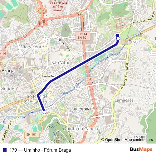 See why over 2 million users trust and consider busmaps.com as the best public transport website. busmaps gives you Braga Buses suggested routes, real-time bus tracker, line route maps in Braga, and helps to find the closest 179 bus stops near you. No internet available? Download an offline PDF map and bus schedule for the 179 bus to take on your trip.