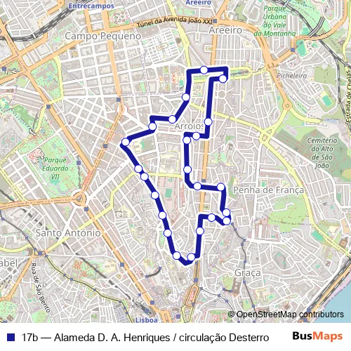 See why over 2 million users trust and consider busmaps.com as the best public transport website. busmaps gives you Lisbon Buses suggested routes, real-time bus tracker, line route maps in Lisbon, and helps to find the closest 17b bus stops near you. No internet available? Download an offline PDF map and bus schedule for the 17b bus to take on your trip.