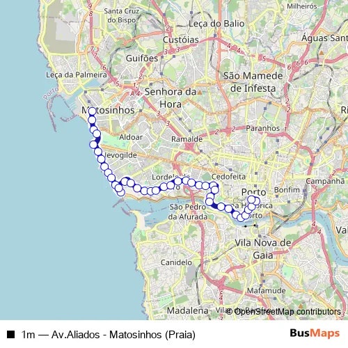 1m (Av.Aliados - Matosinhos (Praia)) Bus in Porto