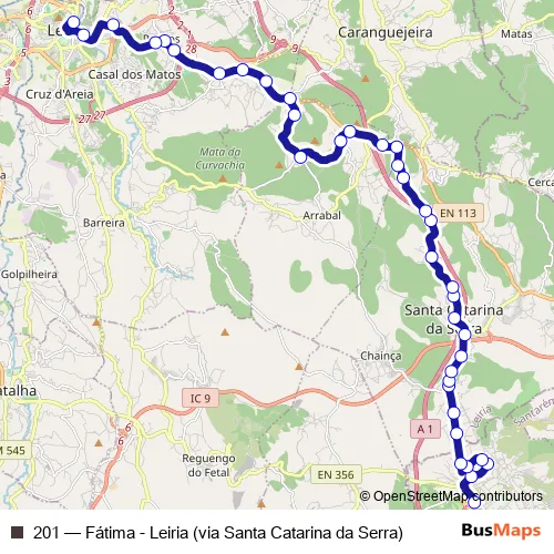Click here to view the nearest 201 - Fátima - Leiria (via Santa Catarina da Serra) bus stop.