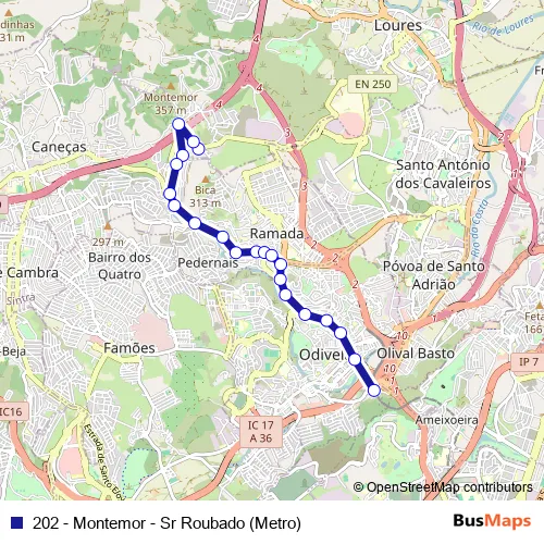 202 - Montemor - Sr Roubado (Metro) bus Route Map