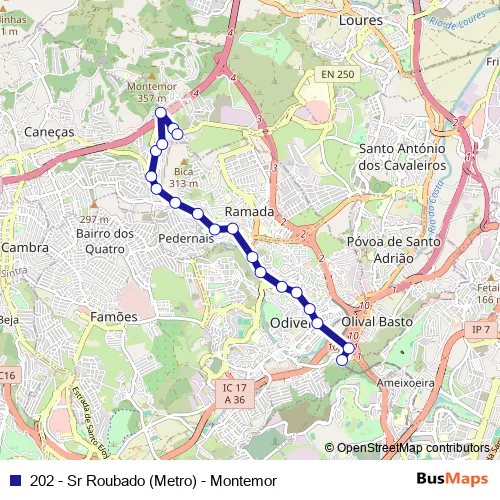 202 - Sr Roubado (Metro) - Montemor bus Route Map