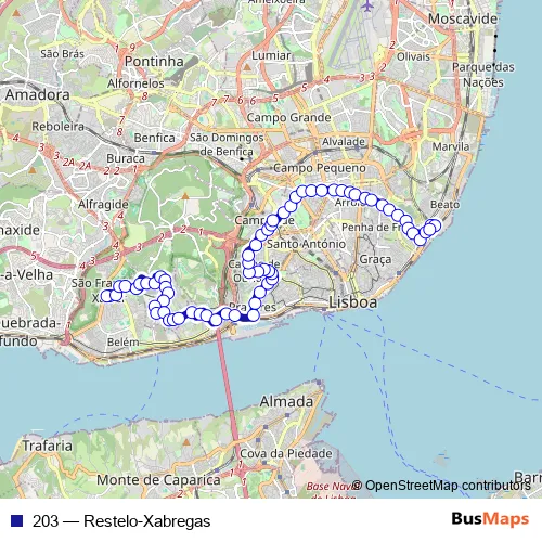 Bus 203 - Restelo-Xabregas: Full Schedule in Lisbon