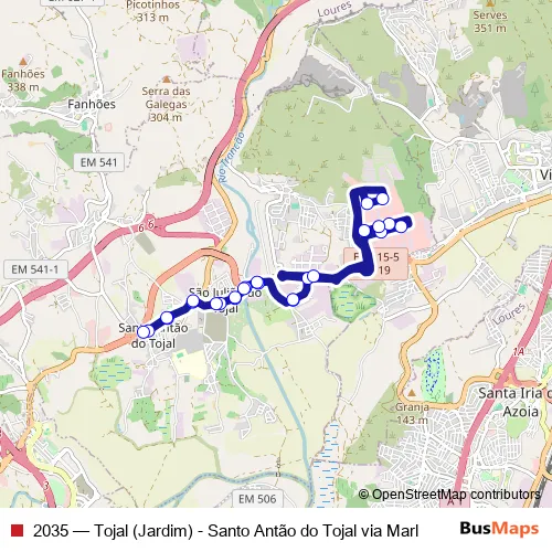 Bus 2035 - Tojal (Jardim) - Santo Antão do Tojal via Marl: Full Schedule in Sao Juliao do Tojal