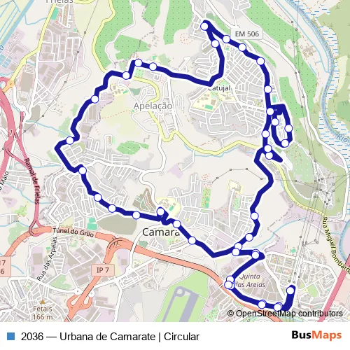 See why over 2 million users trust and consider busmaps.com as the best public transport website. busmaps gives you Lisbon Buses suggested routes, real-time bus tracker, line route maps in Lisbon, and helps to find the closest 2036 bus stops near you. No internet available? Download an offline PDF map and bus schedule for the 2036 bus to take on your trip.
