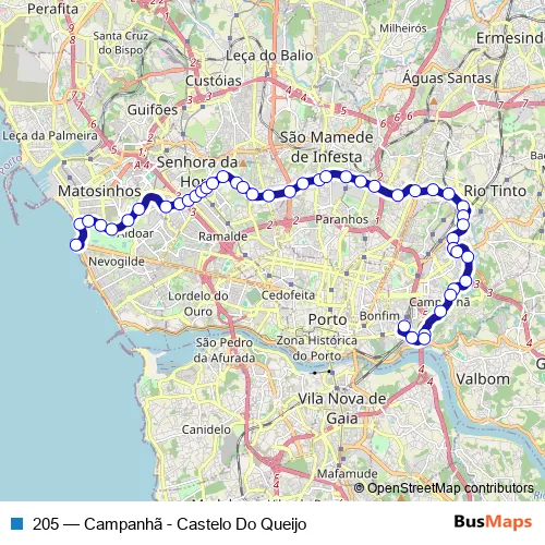 Bus 205 - Campanhã - Castelo Do Queijo: Full Schedule in Porto