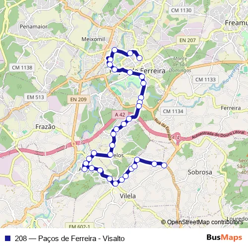Bus 208 - Paços de Ferreira - Visalto in Pacos de Ferreira: Stops & Timetable