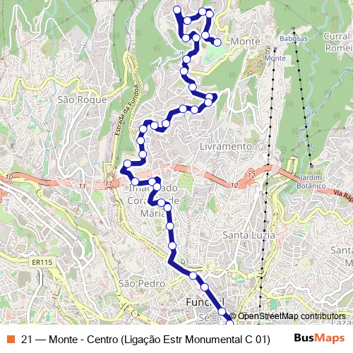 Bus 21 - Monte - Centro (Ligação Estr Monumental C 01): Full Schedule in Funchal