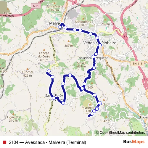 Click here to view the nearest 2104 - Avessada - Malveira (Terminal) bus stop.