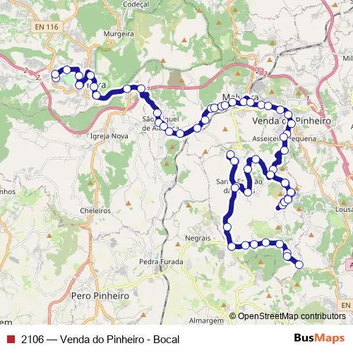 Bus 2106 - Venda do Pinheiro - Bocal: Full Schedule in Mafra