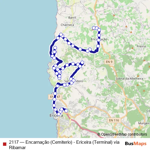 Bus 2117 - Encarnação (Cemiterio) - Ericeira (Terminal) via Ribamar Schedule in Mafra