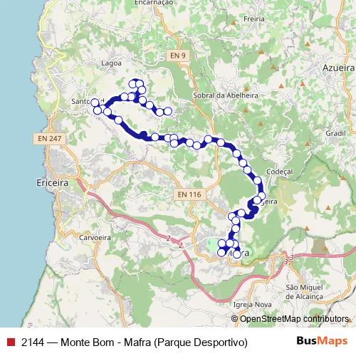 See why over 2 million users trust and consider busmaps.com as the best public transport website. busmaps gives you Mafra Buses suggested routes, real-time bus tracker, line route maps in Mafra, and helps to find the closest 2144 bus stops near you. No internet available? Download an offline PDF map and bus schedule for the 2144 bus to take on your trip.