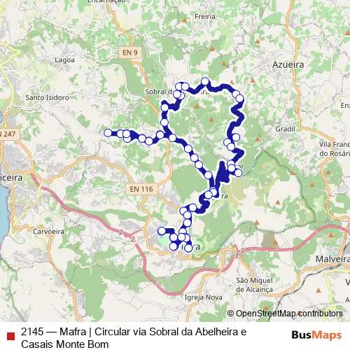 Bus 2145 - Mafra | Circular via Sobral da Abelheira e Casais Monte Bom: Full Schedule in Mafra