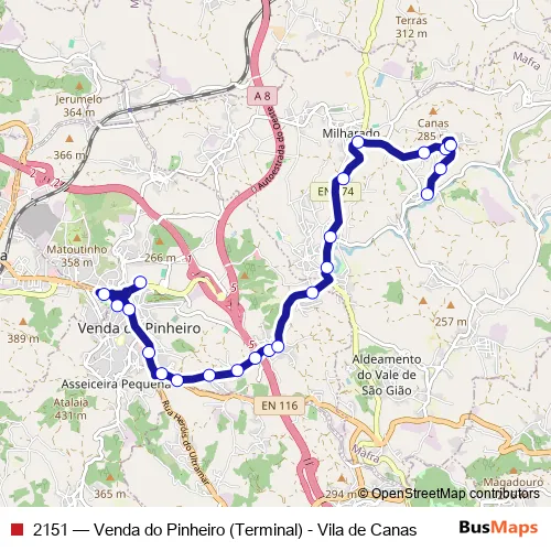 See why over 2 million users trust and consider busmaps.com as the best public transport website. busmaps gives you Mafra Buses suggested routes, real-time bus tracker, line route maps in Mafra, and helps to find the closest 2151 bus stops near you. No internet available? Download an offline PDF map and bus schedule for the 2151 bus to take on your trip.