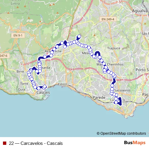 See why over 2 million users trust and consider busmaps.com as the best public transport website. busmaps gives you Oeiras Buses suggested routes, real-time bus tracker, line route maps in Oeiras, and helps to find the closest 22 bus stops near you. No internet available? Download an offline PDF map and bus schedule for the 22 bus to take on your trip.