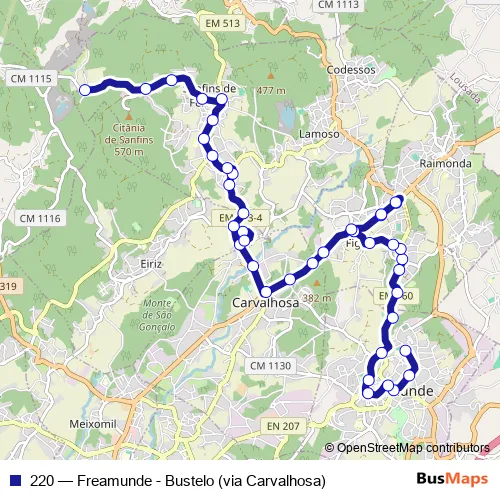 Click here to view the nearest 220 - Freamunde - Bustelo (via Carvalhosa) bus stop.