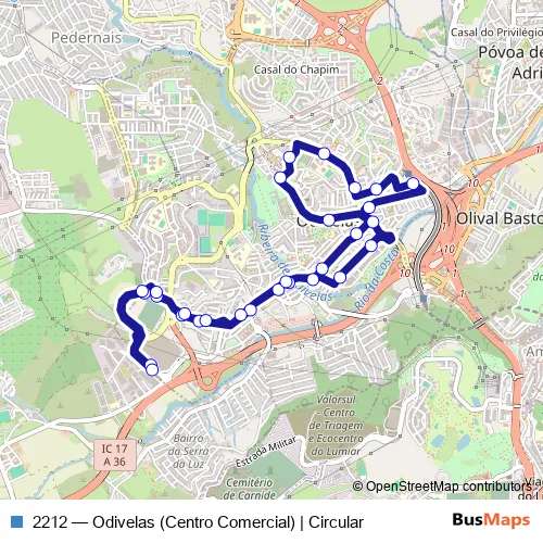 Click here to view the nearest 2212 - Odivelas (Centro Comercial) | Circular bus stop.