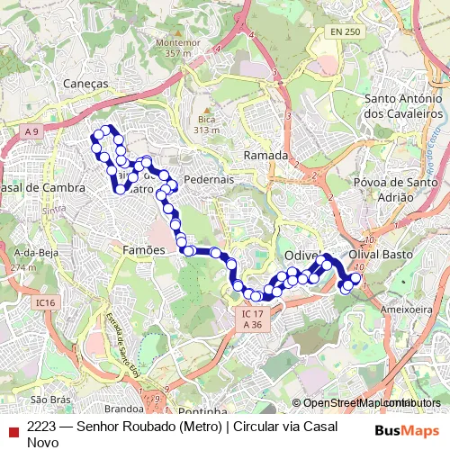 Click here to view the nearest 2223 - Senhor Roubado (Metro) | Circular via Casal Novo bus stop.