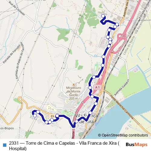 2331 Bus - Torre de Cima e Capelas - Vila Franca de Xira (Hospital)