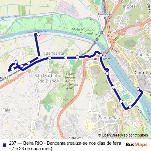 Click here to view the nearest 237 - Beira RIO - Bencanta (realiza-se nos dias de feira - 7 e 23 de cada mês) bus stop.