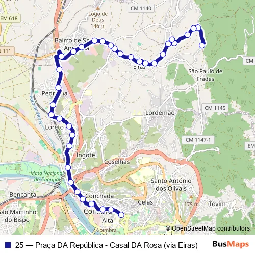 See why over 2 million users trust and consider busmaps.com as the best public transport website. busmaps gives you Coimbra Buses suggested routes, real-time bus tracker, line route maps in Coimbra, and helps to find the closest 25 bus stops near you. No internet available? Download an offline PDF map and bus schedule for the 25 bus to take on your trip.