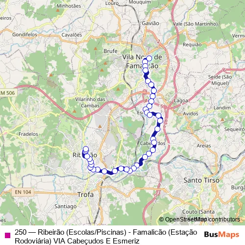 Bus 250 - Ribeirão (Escolas/Piscinas) - Famalicão (Estação Rodoviária) VIA Cabeçudos E Esmeriz Schedule in Vila Nova de Famalicao